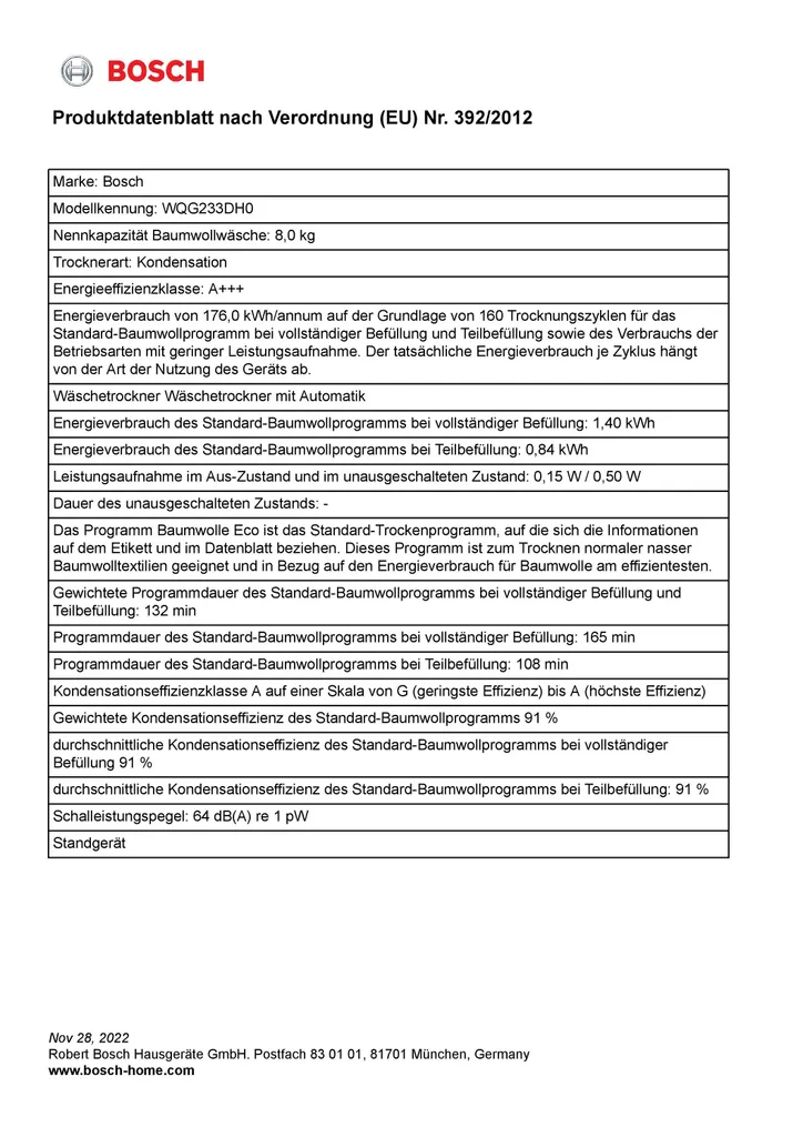Bosch Serie 6 Wärmepumpentrockner, 8 Kg WQG233DH0