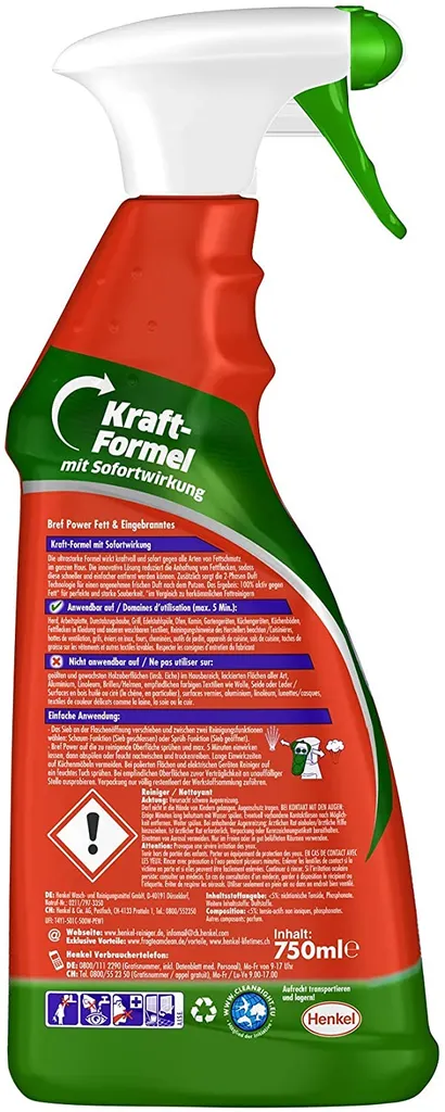 Bref Power Fett Eingebranntes Fettlöser Küchen Reiniger 750 Ml Sprühflasche