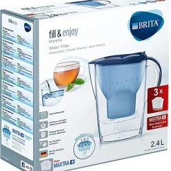 Brita Fill & Enjoy Starterpaket Marella Cool, Gesamtvolumen 2,4 L (gefiltertes Wasser 1,4 L), Incl. 3 Kartuschen MAXTRA+ , Farbe Blau