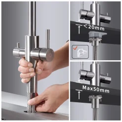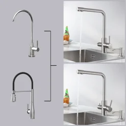 CECIPA Küche Wasserfilter Wasserhahn, Trinkwasserhahn, 3 Wege Wasserhahn, Küchenarmatur, Mischbatterie Für Wasserfiltersystem, Gebürstet