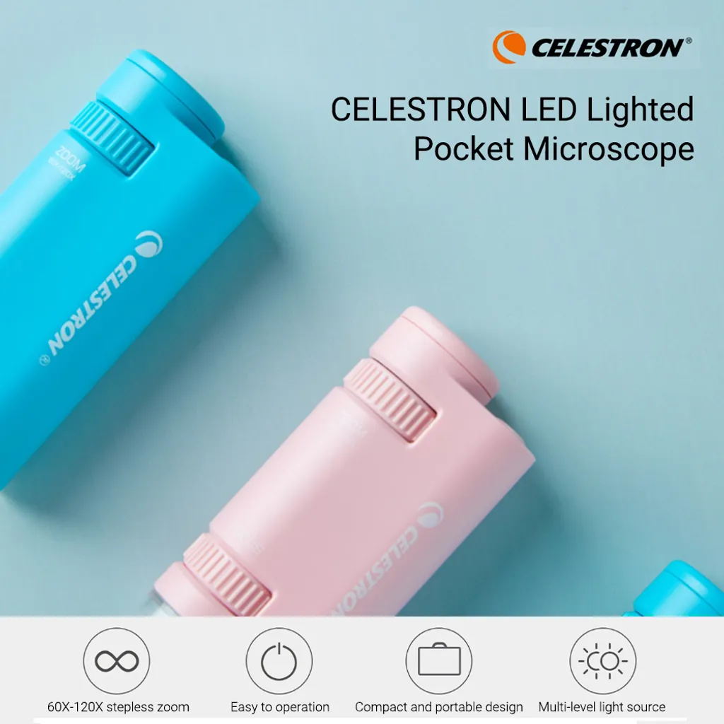 CELESTRON LED Beleuchtetes Taschenmikroskop Tragbares Hochleistungsmikroskop Mit 60X-120X Stufenlosem Zoom Mehrstufige Lichtquelle Fokus Auf Die Miniatur