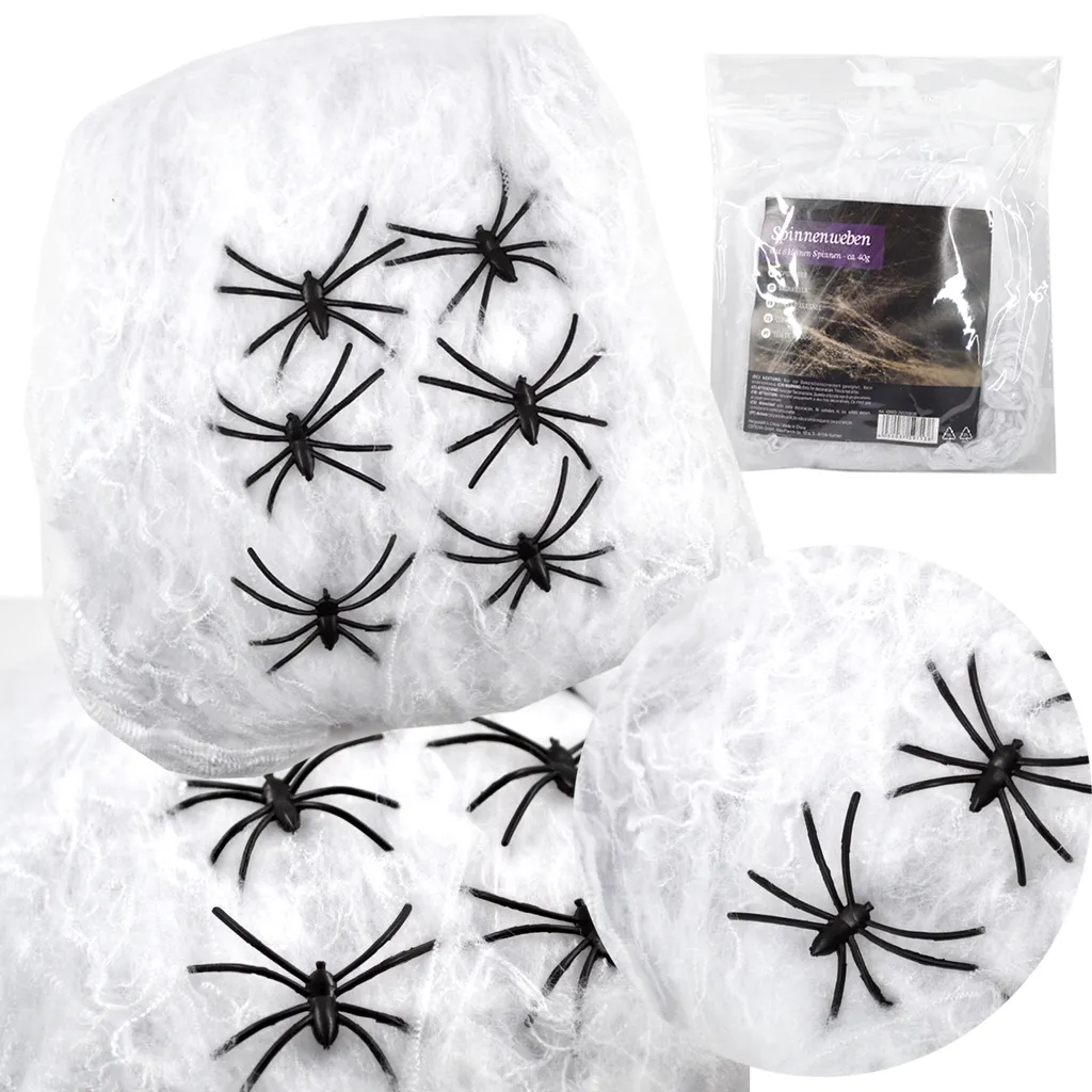 CEPEWA Spinnennweben 6 Spinnen Spinnennetz Grusel Halloween Karneval Deko Party