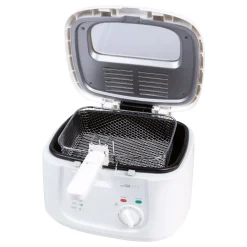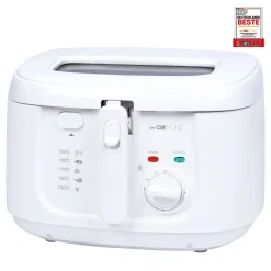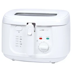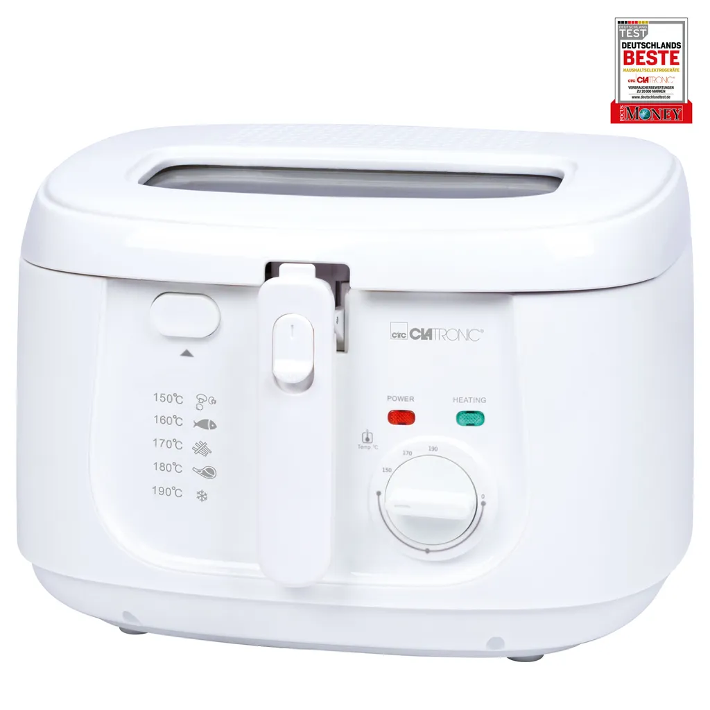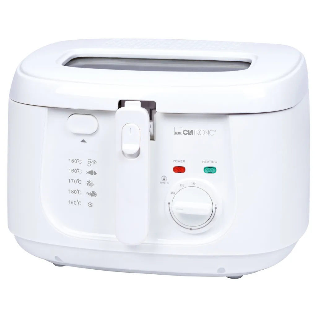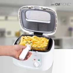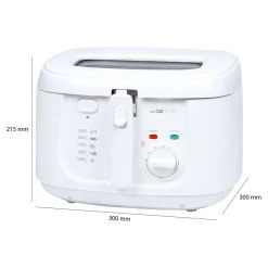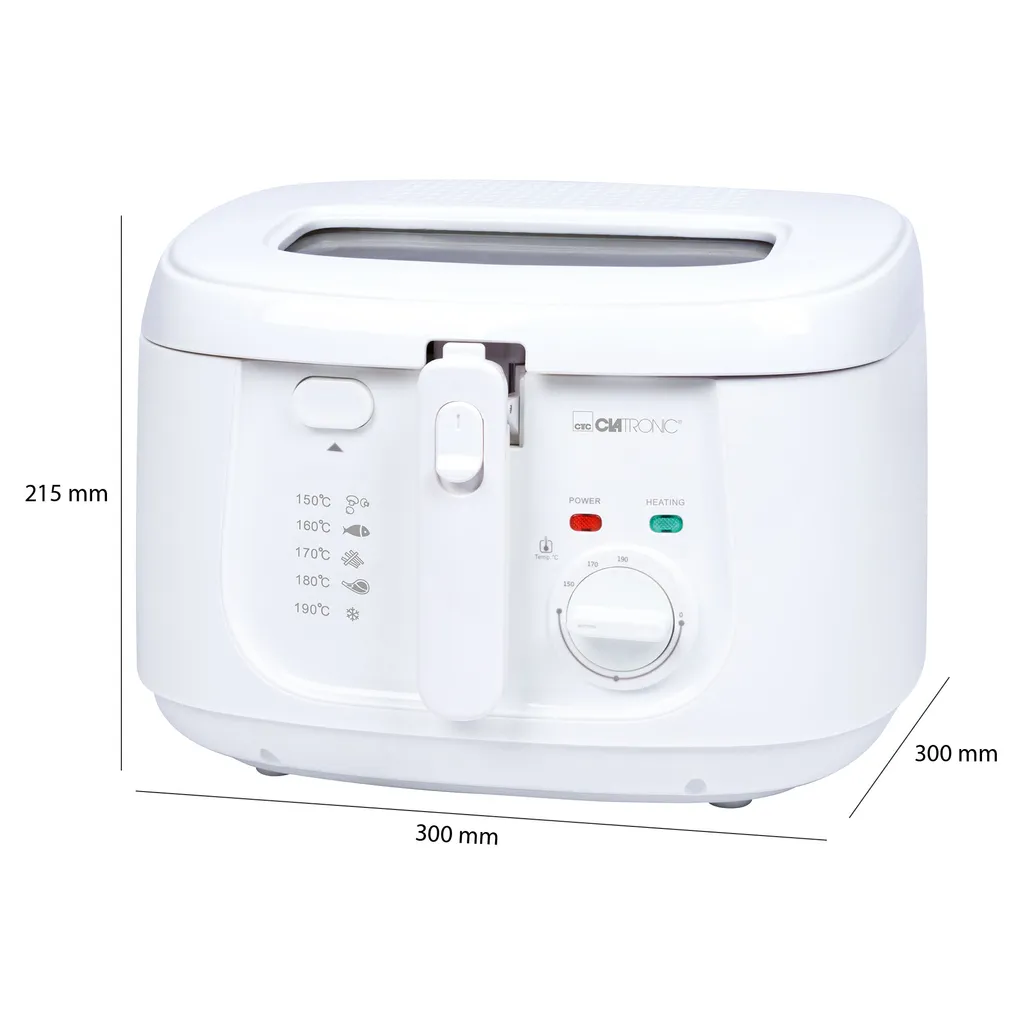 Clatronic FR 3771 Fritteuse, Geruchs- Und Fettdunstfilter, Stufenlos Regelbarer Thermostat Mit Kontrollleuchte (130 °C–190 °C), Großer Frittierkorb, 1800 W, Cool Touch-Gehäuse, Weiß