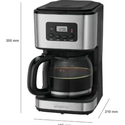 Clatronic KA 3642 Kaffeefiltermaschine Für 12-14 Tassen 1,5 L, Programmierbare 24-Stunden LCD-Digital-Zeitschaltuhr, Edelstahlfront