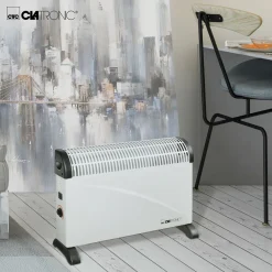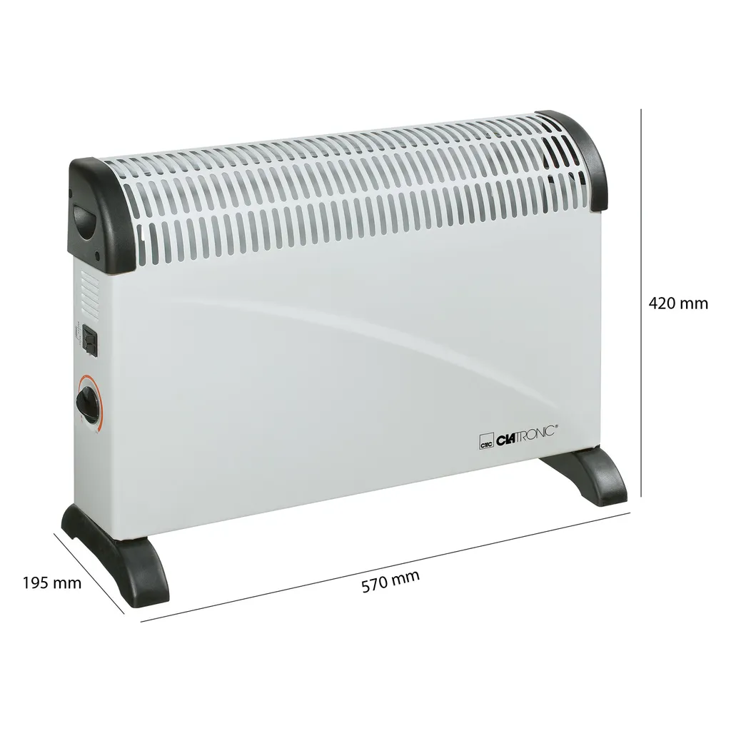 Clatronic KH 3077 Konvektor Heizung, Mobile Wärme, 3 Heizstufen (750/1250/2000 Watt), Stufenlos Regelbarer Thermostat, Komfortable Tragemulden, Geräuscharm