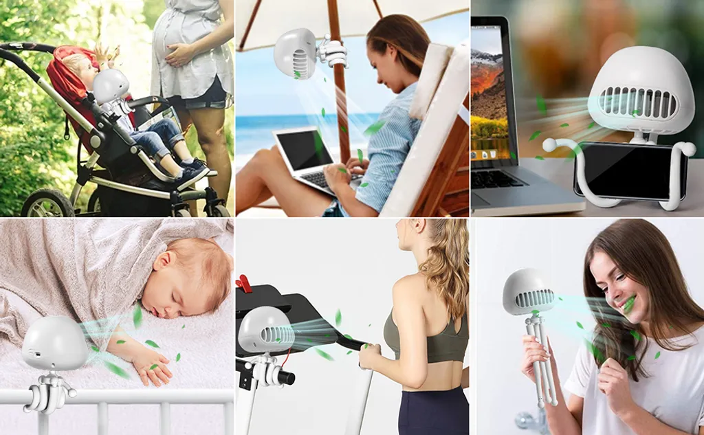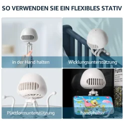 CMYBABEE Kinderwagen Ventilator, Tragbarer Blattloser Ventilator, 3-Gang-Optionen, Wiederaufladbarer, USB Ventilator, Für Kinderwagen, Schreibtisch, Zelt Und Reise, Handheld Ventilator-Weiß