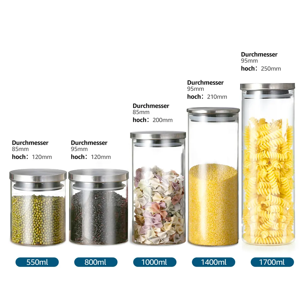 CMYBABEE Vorratsdose Glas 1400ML, Höhe 21 Cm, Vorratsglas Mit Deckel, Kaffeebohnen Behälter, Müslidose, Frischhaltedose Mit Große Einfüllöffnung (M, 1 Stück)