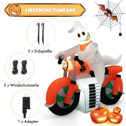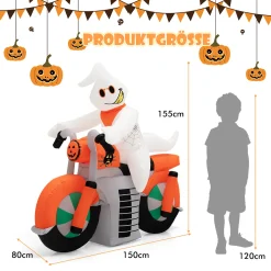 COSTWAY 155cm Halloween-Geist Aufblasbar, Halloween-Dekoration Mit Eingebauten LED-Leuchten, Wasserdichtem Gebläse & Sandsäcken, Geisterbiker Für Hof, Garten & Party
