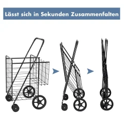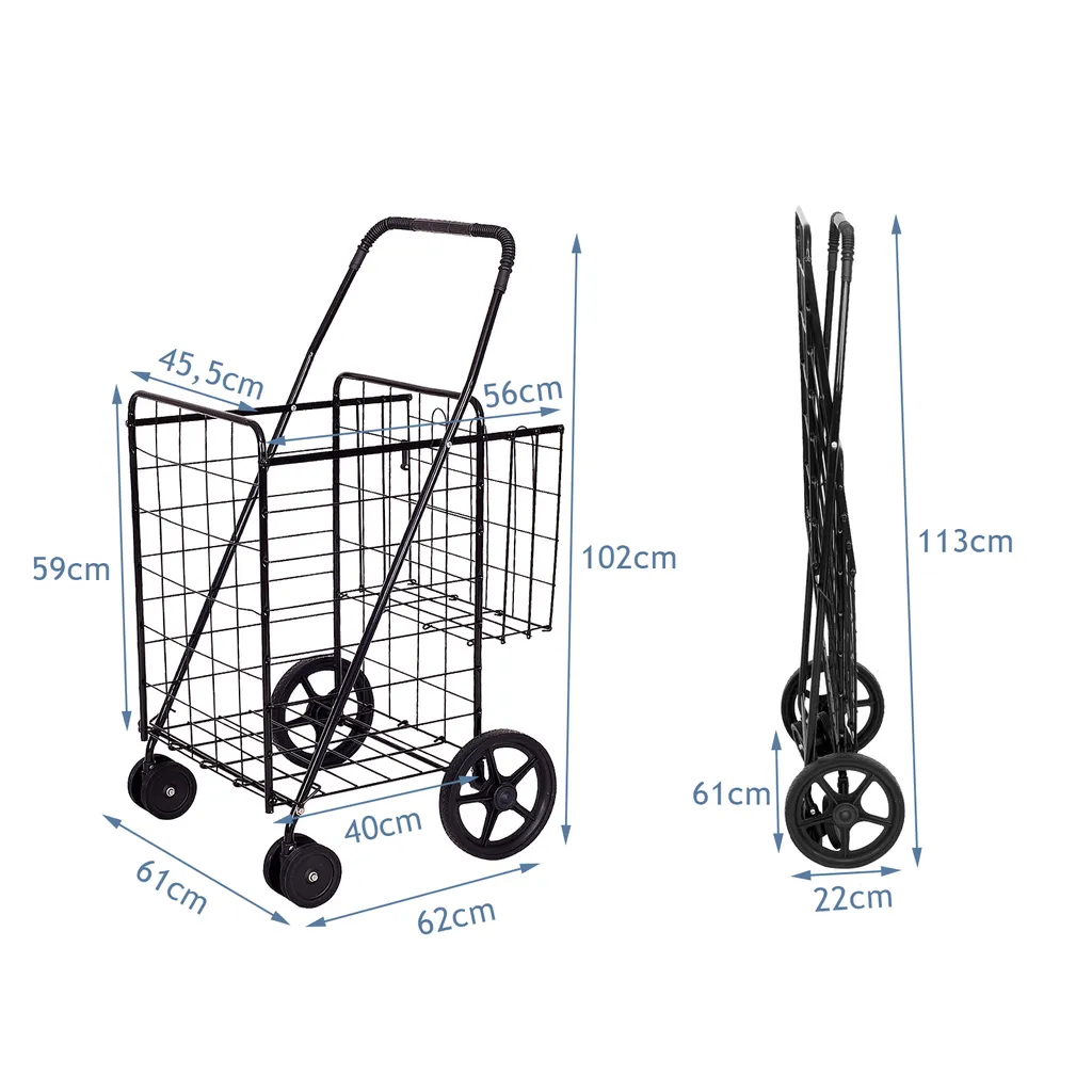 COSTWAY Klappbarer Einkaufstrolley, 40kg, 100L+22L, Einkaufswagen Mit Universalrädern, Rollwagen Mit 2 Körben, Tragbarer Handwagen, Allzweckwagen Für Wäsche, Einkaufen, Gepäck (Schwarz)