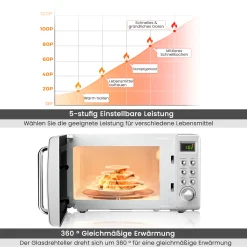COSTWAY Mikrowelle 20L, 700 W Mikrowellenofen, Mit 8 Automatischen Programme, 5 Leistungsstufen, LED-Anzeige, Verzögerter Start, Retro, Weiß