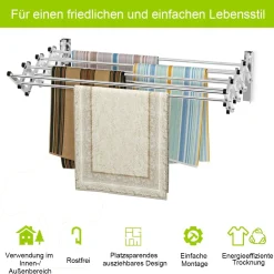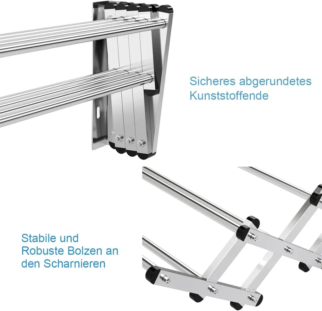 COSTWAY Wäscheständer Zur Wandmontage, Wandtrockner Ausziehbar Aus Edelstahl Mit 8 Stangen, Platzsparender Wandwäschetrockner, Tragkraft 25 Kg, Für Waschküche, Badezimmer