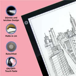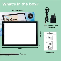 Crafts & Co. Crafts&Co Leuchtpad A3 | Leuchttisch 3-Stufen Dimmbar | 470×345 Mm | Lightpad Mit USB & Linealrand