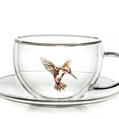 Creano 6er-Set Thermo-Tasses „Hummi“ Für Tee/Latte Macchiato, Doppelwandig, Mit Kolibri-Muster | 250ml In Exklusiver Geschenkpackung
