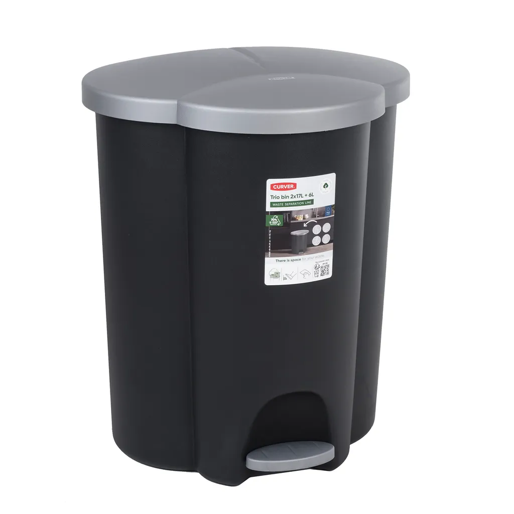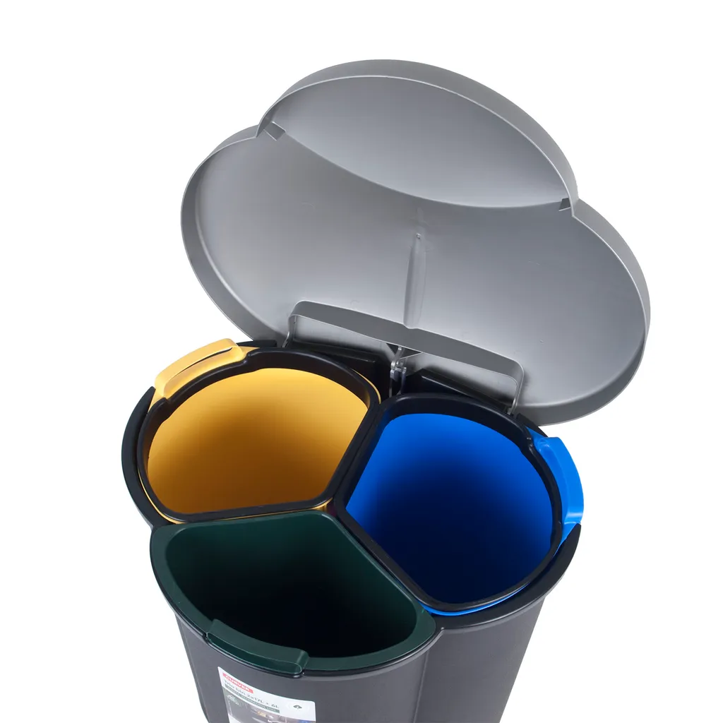 Curver Abfalleimer 40L Treteimer Müllsortierung 3 Fächer Mülltrennsystem Abfalltrennsystem 3-Fach Inneneimer Aus Kunststoff