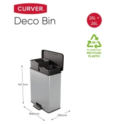 | Zusätzliche Varianten | Curver Duo Tretmülleimer Deco 23L+23L Silbern, Curver Duo Tretmülleimer Deco 26L+26L Silbern |
