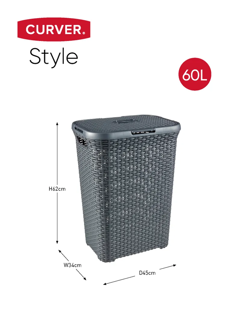 CURVER STYLE Wäschebox 60L + Wäschekorb 45L, Anthrazit 246288