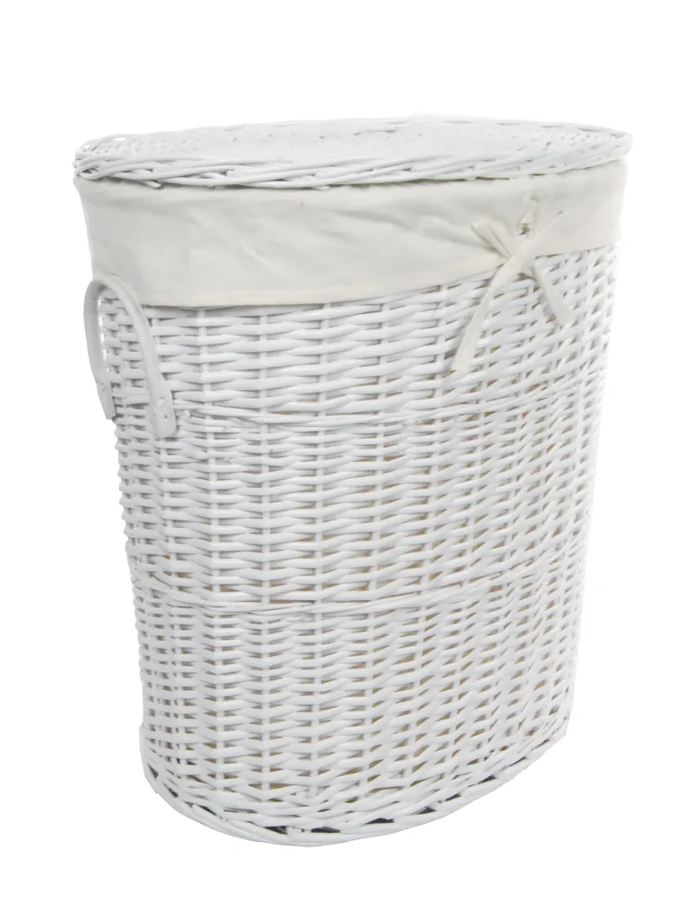 D Vier Wäschekorb Wäschetonnen Wäschetruhe Weide Weiß Oval 100L Mit Bezug Deckel Handgriffe 55×42 H.62