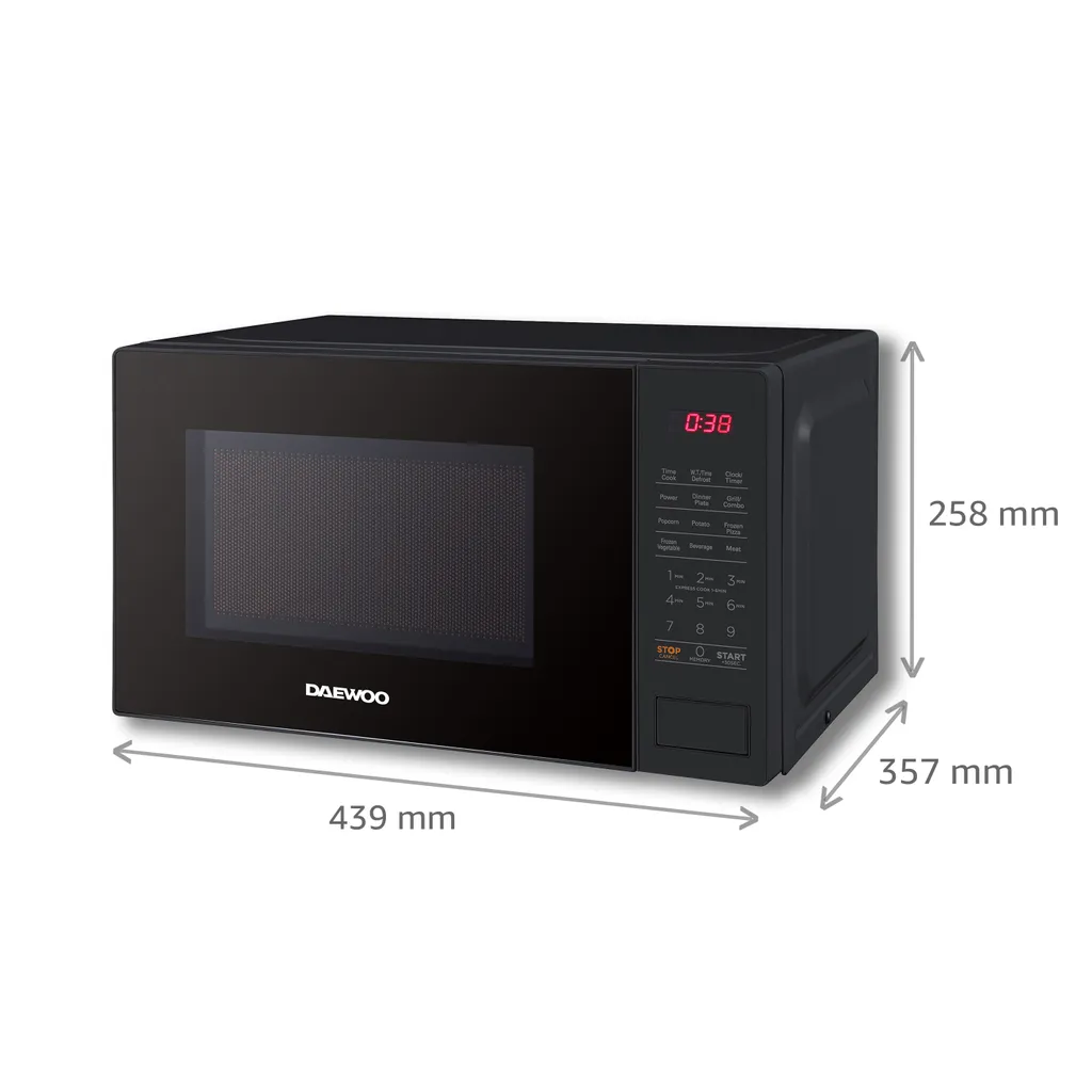 Daewoo MMF0G20T3B001 Mikrowelle Mit Grill (700W, 1100W Grill, 20 L Garraum, 5 Leistungsstufen, 8 Auto-Menü Optionen, Timer, Kindersicherung)