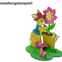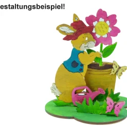 DeColibri Bastelset Basteln Kinder Erwachsene Holz Osterdeko „Hasenfamilie Gärtner“