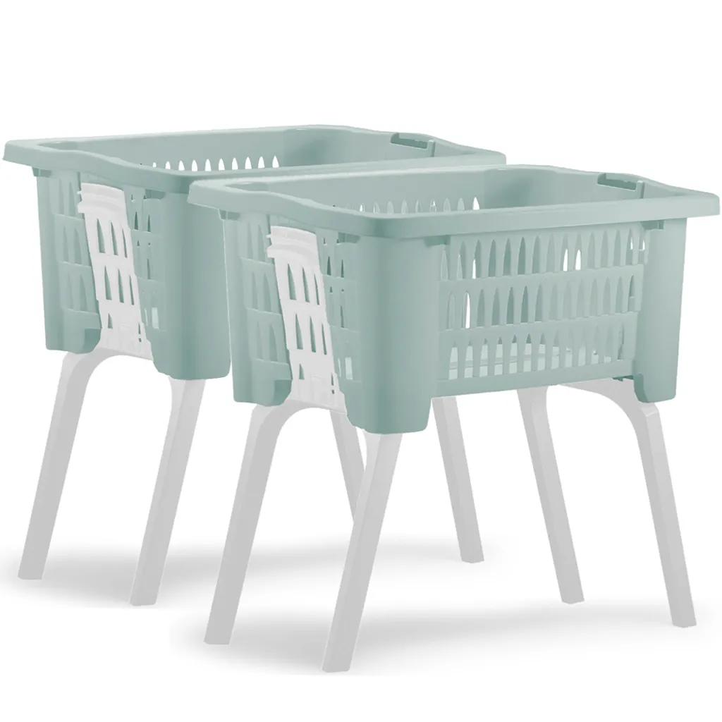 Deuba Wäschekorb 2er Set Klappbare Standfüße Tragegriff 38L Badezimmer Wäschesammler Waschbehälter Aufbewahrungskorb Kunststoff, Anzahl/Farbe:2x Grün