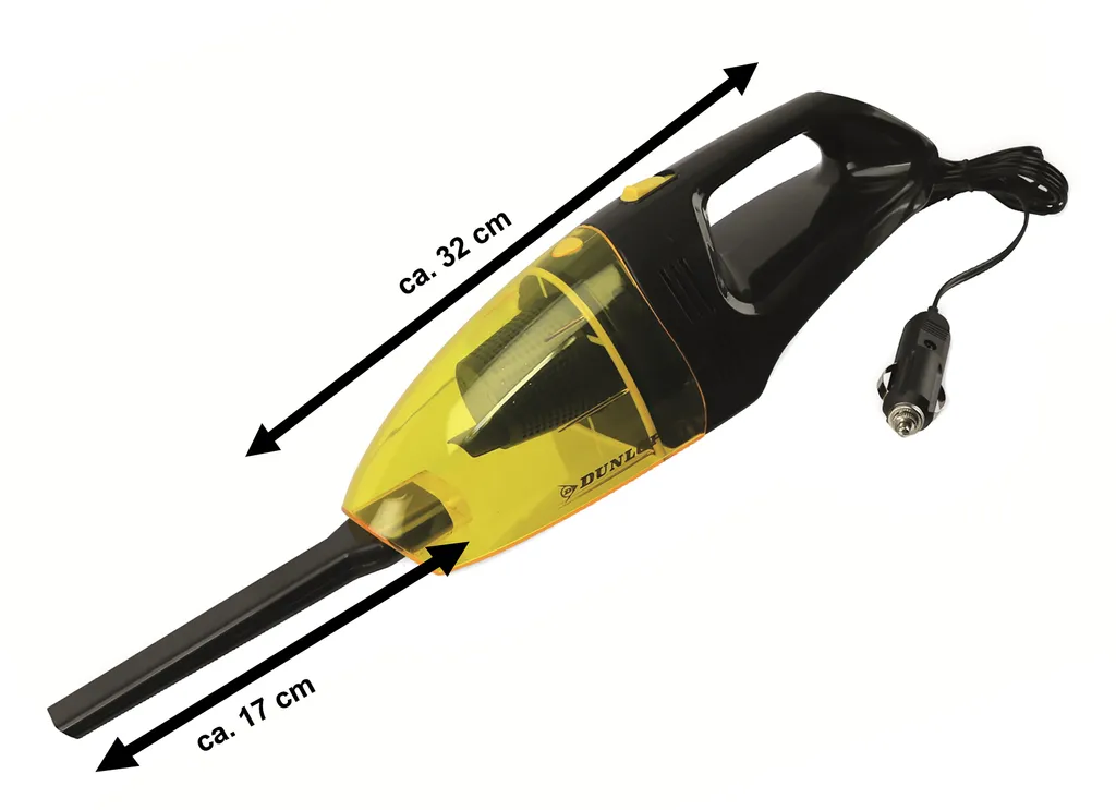 Dunlop KFZ Staubsauger, Nass- Und Trockensauger Mit Fugendüse, Beutellos, Bauweise Kompakt, Kabel-Länge Ca. 270 Cm, 12 V-Stecker/60W