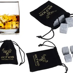 Echos 4er Whisky Steine Set Aus Granit | Wieder Verwendbar | Im Hochwertigem Stoffbeutel |