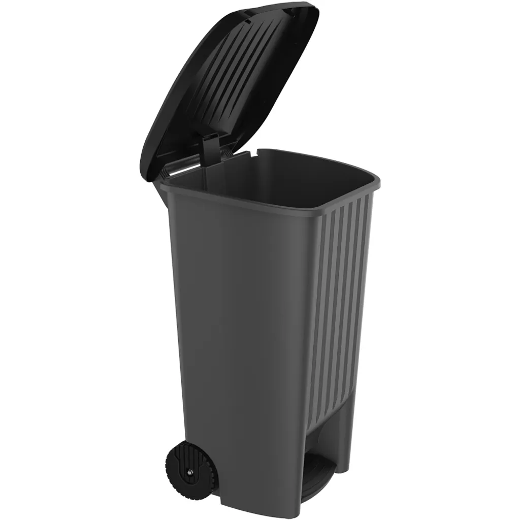 EDA PLASTIQUE Mülleimer Outdoor 90 L Anthrazit/schwarz Mit Pedal Und Rädern