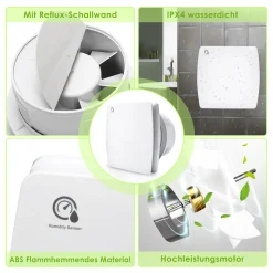 EINFEBEN Badlüfter 150mm Mit Feuchtigkeitssensor Und Einstellbarer Nachlaufzeit, Wandlüfter Mit Rückflussleitblech Und Timing-Funktion, Ventilator Lüfter Für Bad WC Küche Wandventilator Badezimmer