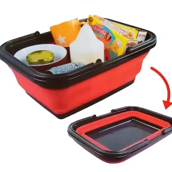 EINKAUFSKORB Faltbar Mit 2 Griffen DUNLOP Waschbecken Tragekorb Campingschüssel Picknickkorb Spülschüssel Faltschüssel Einkaufstasche Camping Picknick Korb 65 (Rot)