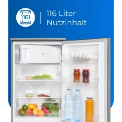 Exquisit Kühlschrank KS15-4-E-040D Inoxlook | 116 L Nutzinhalt | Edelstahloptik