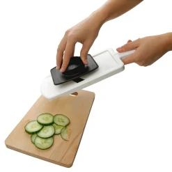 Fackelmann Dick-/Dünnschneider Mit Restehalter, Gemüseschneider Mit Zweiseitiger Edelstahl-Klinge, Hochwertiger Gemüsehobel (Farbe: Weiß/Schwarz), Menge: 1 Stück