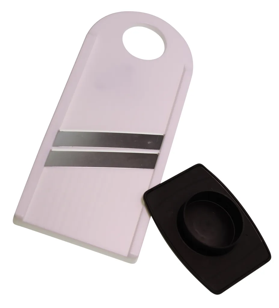 Fackelmann Gemüsehobel Mit Restehalter, Gemüseschneider Mit 2 Edelstahl-Klingen, Hochwertiger Gurkenhobel (Farbe: Weiß/Schwarz), Menge: 1 Stück