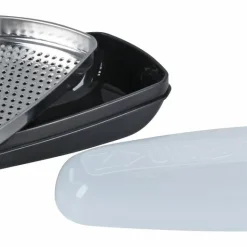 Fackelmann Parmesanreibe- Und Frischebox, Parmesanhobel, Käsereibe Mit Servier-Behälter (Farbe: Transparent/Grau), Menge: 1 Stück