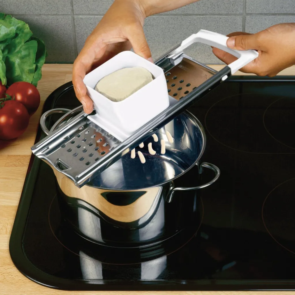 Fackelmann Spätzlehobel Kurz ARCADALINA, Spätzlereibe, Profi-Spätzlehobel Klassisch, Aus Edelstahl, Für Kurze Spätzle (Farbe: Weiß/Silber), Menge: 1 Stück