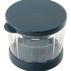 Fackelmann Zwiebelhacker Easyprepare, Hochwertiger Zwiebel-, Gemüse- Und Kräuterhacker Mit Durchsichtigem Auffangbehälter, Sicherer Halt Durch Anti-Rutsch-Füße (Farbe: Weiß / Blau-Grau)