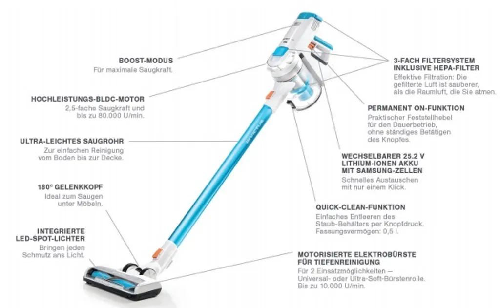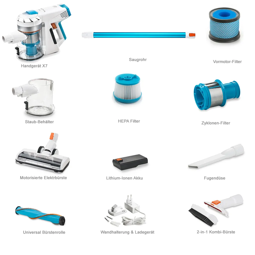 Genius Invictus X7 Set 13tlg Akku Staubsauger Handstaubsauger Mit LED Beutellos Kabellos Für Allergiker Tierhaare; A28015