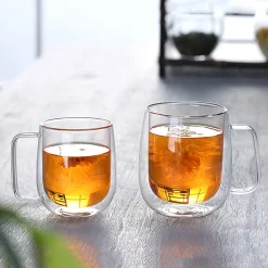 Giantbag Berlin Doppelwandiges 2 X 250 Ml 2 Stück Set Cappuccino Gläser – Spülmaschinen- Und Mikrowellensicher – Doppelwandige Gläser, Schwebeeffekt, Thermogläser, Hitzebeständiges Teeglas, Kaffeeglas Tasse (8.5 Oz)