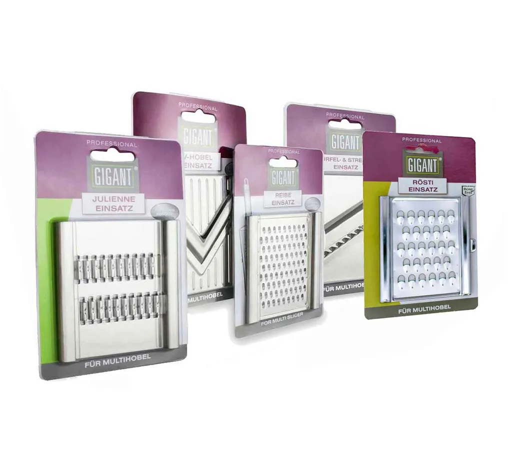 GIGANT Muxel Gemüse-Hobel (Vierfachhobel) Mega-Set Mit 5 Zusätzlichen Einsätzen In Der Praktischen Multi-Box, Lila