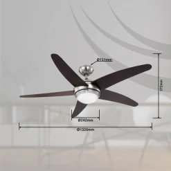 Globo Lighting VENTILATOR Metall Nickel Matt, MDF Wenge, Glas Opal, Fernbedienung, Batterie Inkludiert 2x AAA,, Max. Motorleistung 55W, Optimale Raumnutzung 30m², Abkühlung, Aufheizen, Geschwindigkeitsstufen 80/95/170 RPM, ø: 1320mm, H: 372mm, Exkl. 1x E14 60W 230V