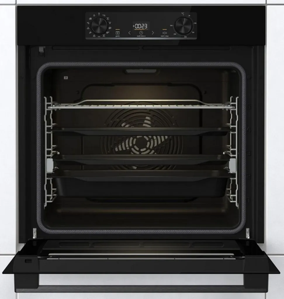 Gorenje BPS6737E14BG Einbau-Elektrobackofen, Schwarz, 77 L Volumen, 59,5 Cm Breite, Ober-/Unterhitze + Umluft, Selbstreinigungsfunktion, Display, Integrierte Uhr