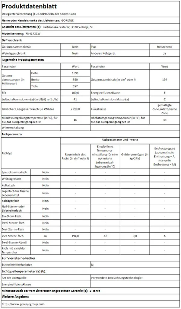 Gorenje – FN4172CW – Gefrierschrank – Weiß – Rauminhalt Gesamt: 194 Liter – No Frost – 4-Sterne-Gefrierfach – Türanschlag Wechselbar