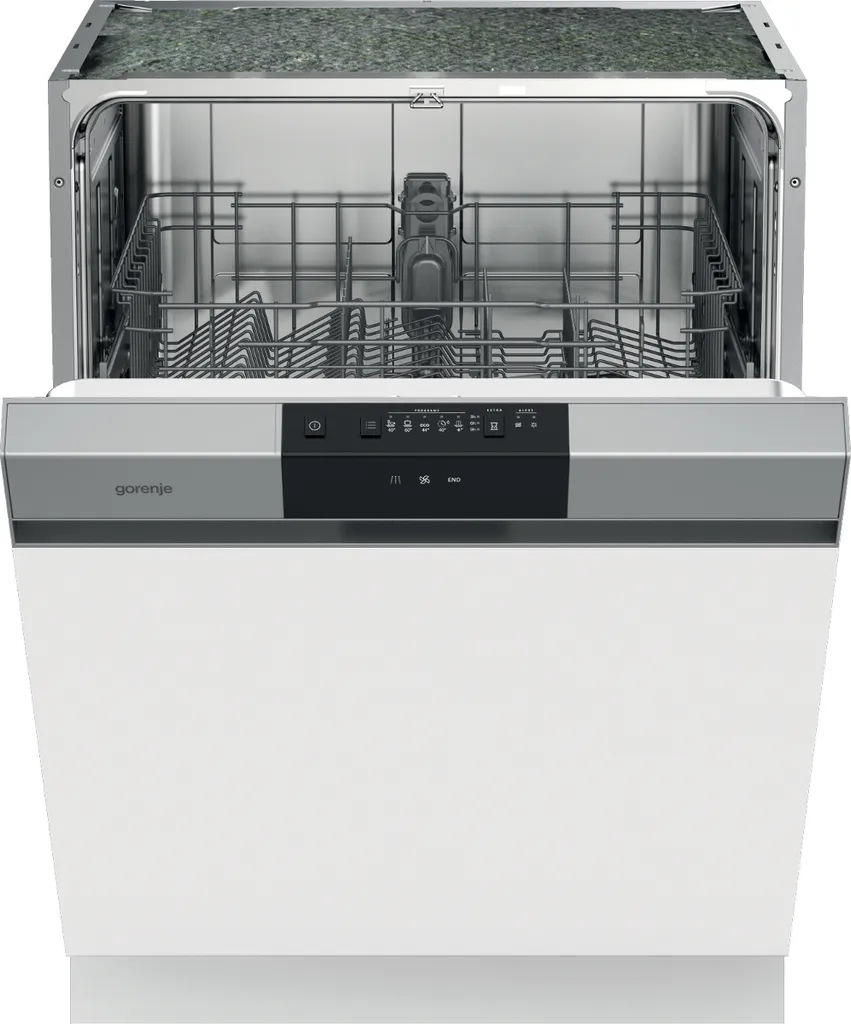 Gorenje GI 62040 X Einbau-Geschirrspüler 60cm Teilintegriert – Silberfarbene Bedienblende -13 Maßgedecke – Edelstahlbottich – Geschirrkorb – AquaStop – Selbstreinigende Filter