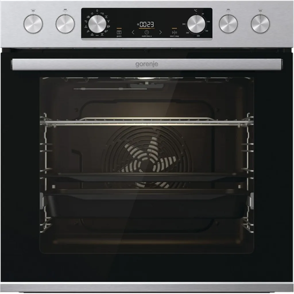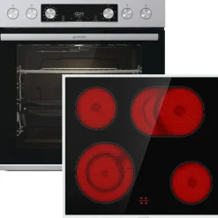 Gorenje Steel Set 4 Einbauherd – Set Mit Glaskeramik-Kochfeld Mit Edelstahlrahmen – 77L XXL Volumen – GentleClose & -Open – AirFry – PizzaMode – ChildLock – PerfectGrill – Teleskopauszüge – Schwarz