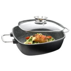 GSW Viereckbräter Gourmet GRANIT 28 X 28 X 8,5 Cm , Aluminium, Edelstahl, Glas, Viereckbräter Mit Aroma-Glasdeckel ø Ca. 28 X 28 X H 8,5cm