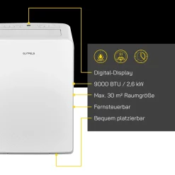 GUTFELS Klimagerät CM 80948 We | Mobiles Klimagerät | 9000 BTU / 2,6 KW Kühlleistung | 970 W Leistung | Weiß