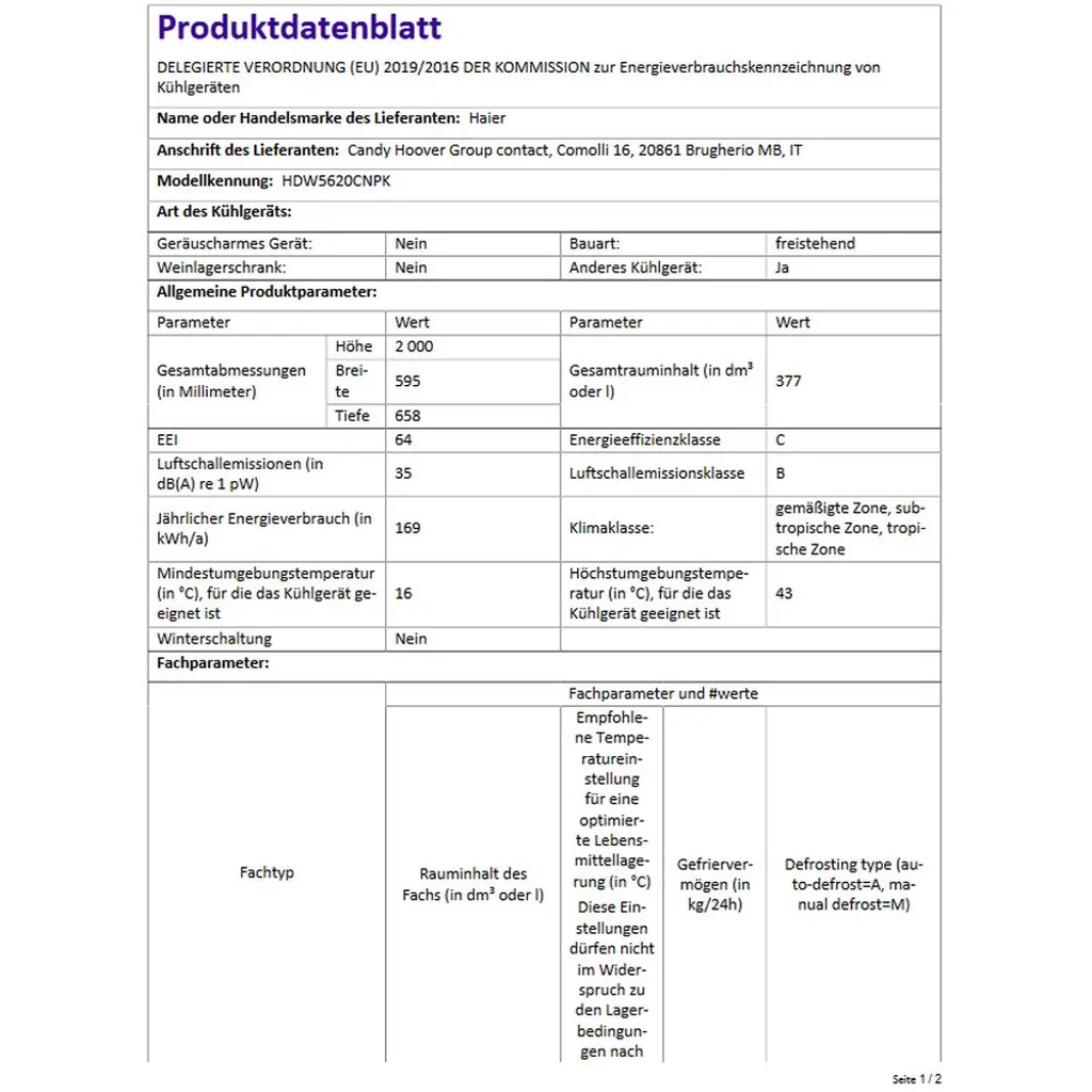 Haier HDW5620CNPK Kühl-/Gefrierkombination