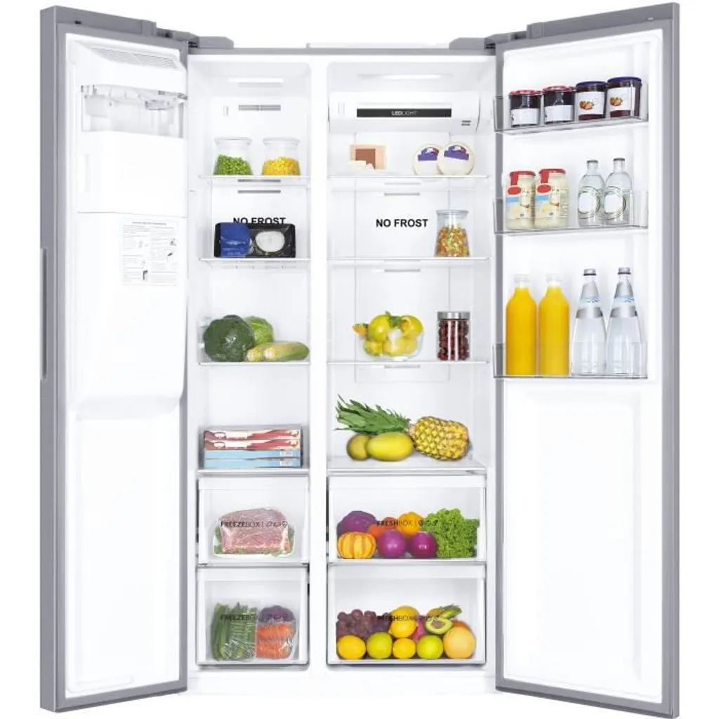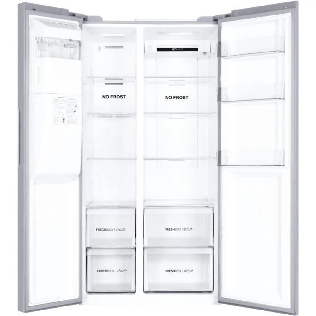 Haier SBS 90 Serie 3 HSOGPIF9183, Freistehend, Amerikanische Tür, Silber, LED, Berührung, An Tür