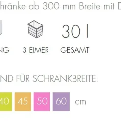 | Zusätzliche Varianten | Hailo Küchen Mülleimer, Einbau 30 cm Schrank, 3-fach Einbaumülleimer, Hailo Mülleimer Küche, Einbau 30 cm Schrank, Abfalleimer 3×10 Liter |