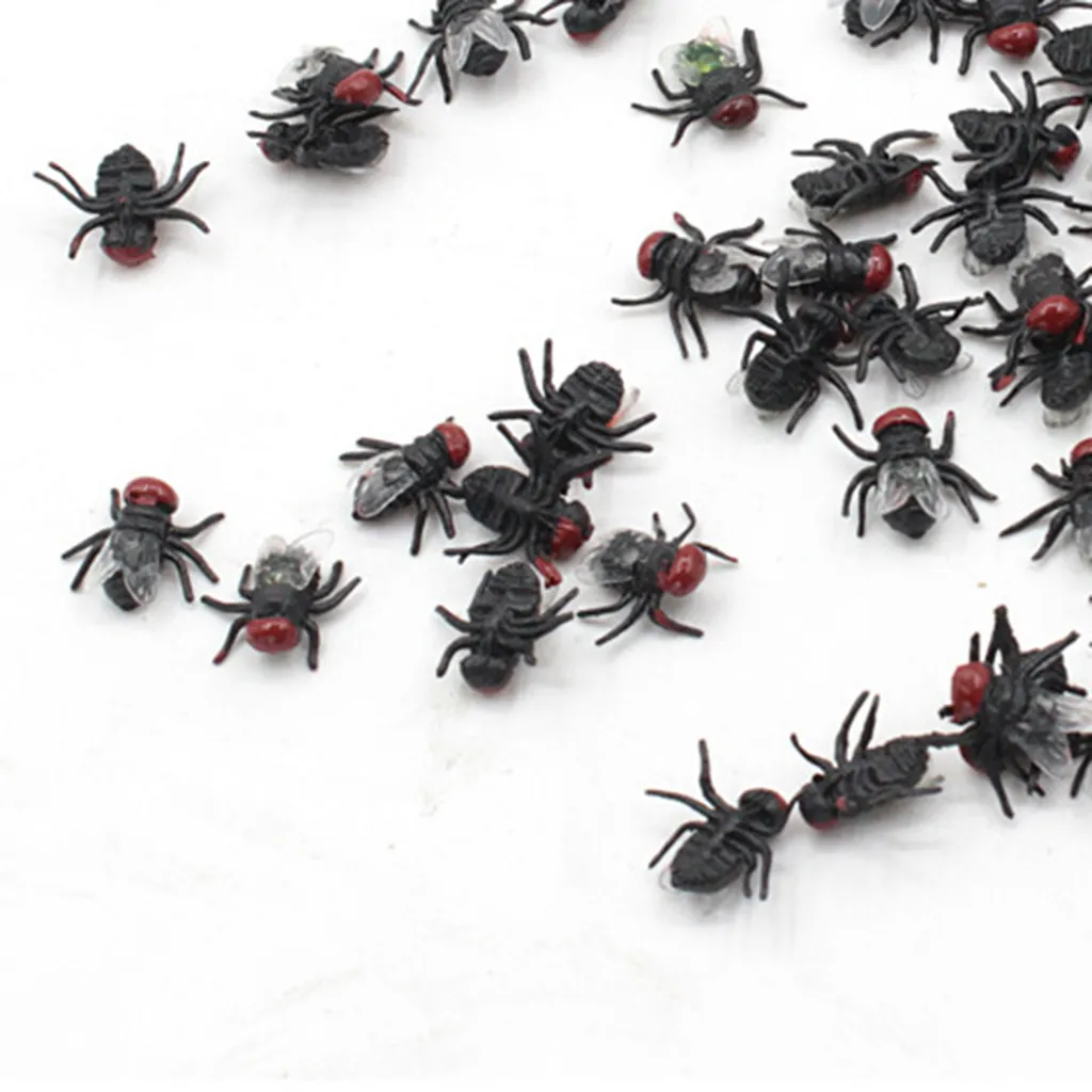 Hameb 100 Stücke Gefälschte Fliegen Realistische Heikle Requisiten Kunststoff Halloween Party Simulierte Insekten Fliegen Streich Spielzeug