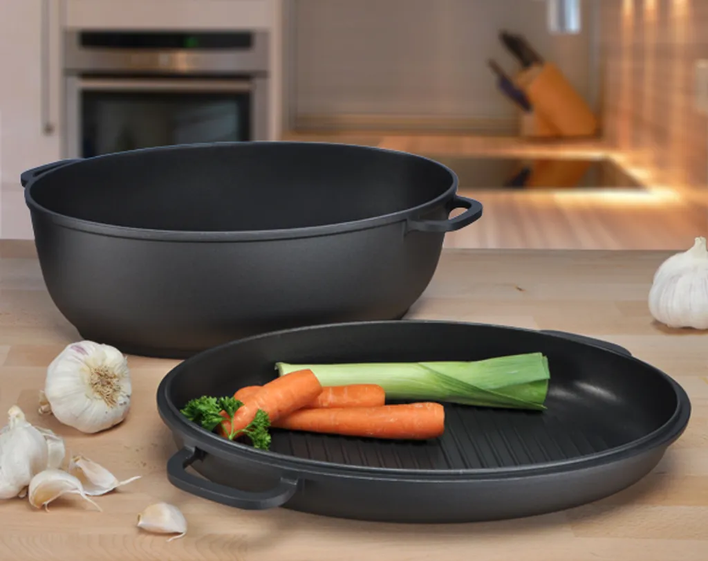 Haushalt International Universalbräter 7,5 L Alu-Gussbräter Multi-Grill-Bräter Deckel = Auflaufform